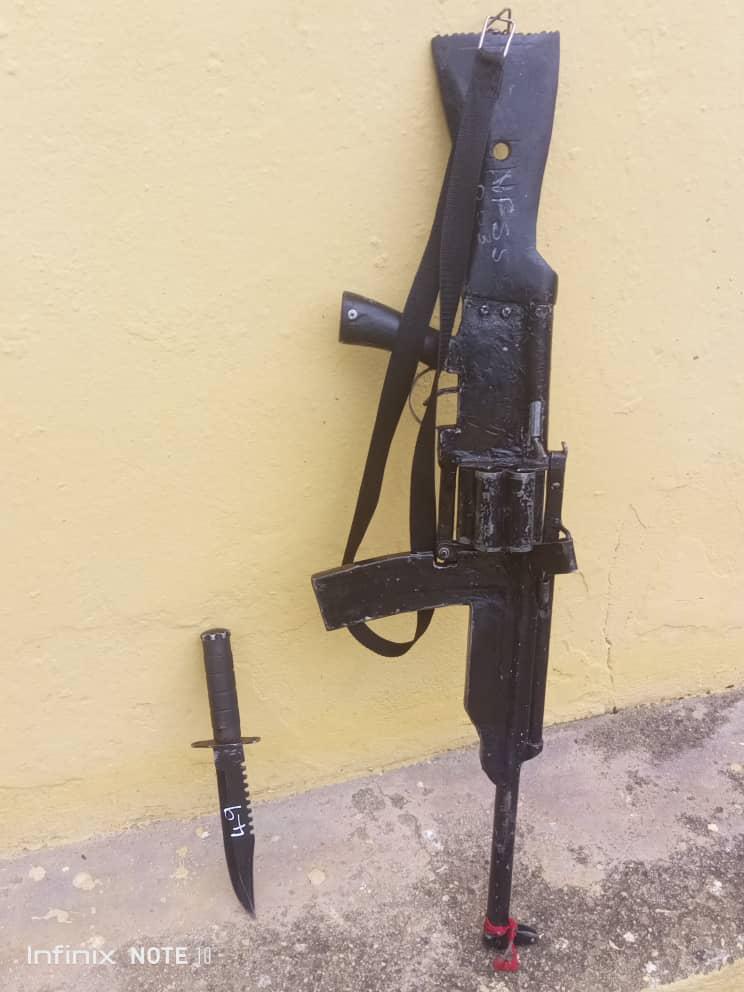 Instant search on them led to the recovery of the following: One fabricated revolving AK-47 rifle, one jack knife.”